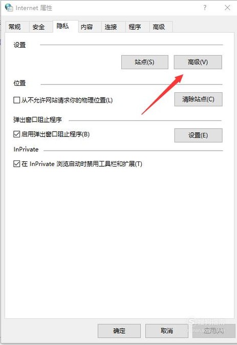3. 打开“internet选项”后,选择“隐私”按钮。