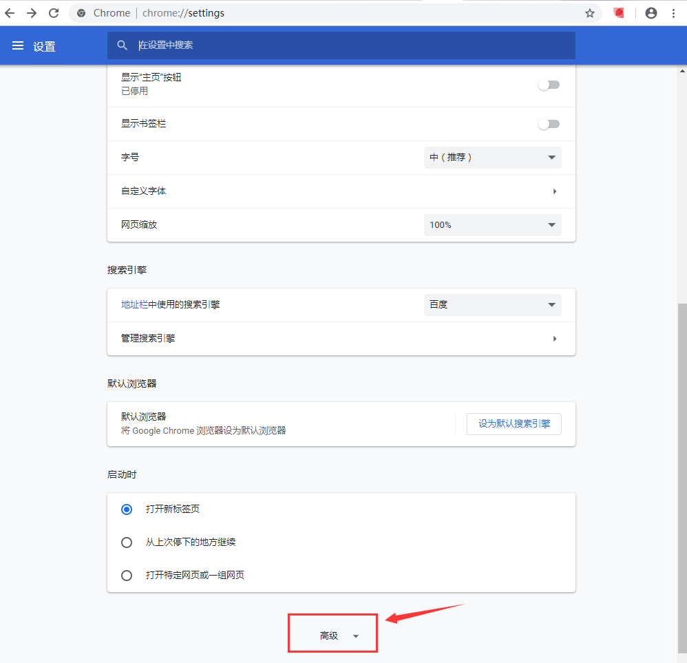 2.点击“高级”,展开高级设置中的内容。
