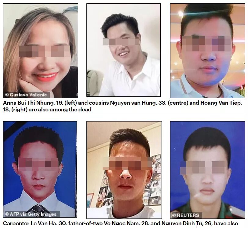 26岁女孩Pham Thi Tra My在这次事故中遇难。事发前,她曾给家人发了一条信息。女孩在短信中写道:“妈妈爸爸,我真的非常非常抱歉,我到异乡的旅行失败了。我快死了,我无法呼吸。妈妈爸爸,我非常爱你们。对不起,妈妈。”