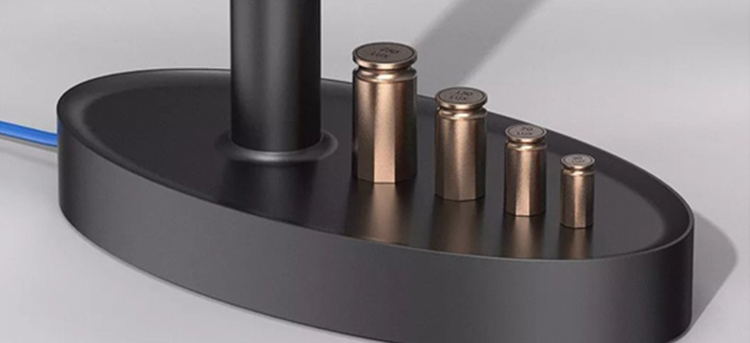 这款台灯有着优雅的外挂,如同一只天枰,整个支架修长又挺拔,一头是内置 LED 光源的灯罩,一头则是一个小巧的平衡托盘,正好可以在上面放上配套的砝码。
