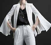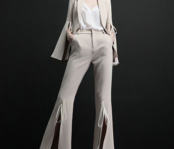白色西装设计师2018春新款喇叭开叉外套长裤个性套装聚会OL女装