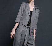 设计师2018春新款款竖条纹职业优雅宴会礼服短款西装+9分裤套装女